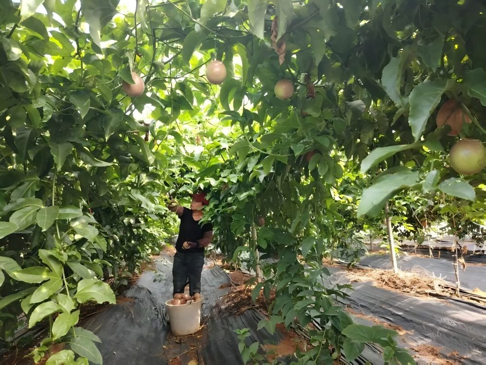 基地內,工人們熟練地采摘成熟的果實。主栽品種“金都7號”以果實大、水分足、甜度高著稱,市場反響熱烈。記者了解到,英烈村優(yōu)越的土壤和氣候條件,加上科學管理,使百香果品質優(yōu)良且生長周期短(約5個月),經(jīng)濟效益顯著。