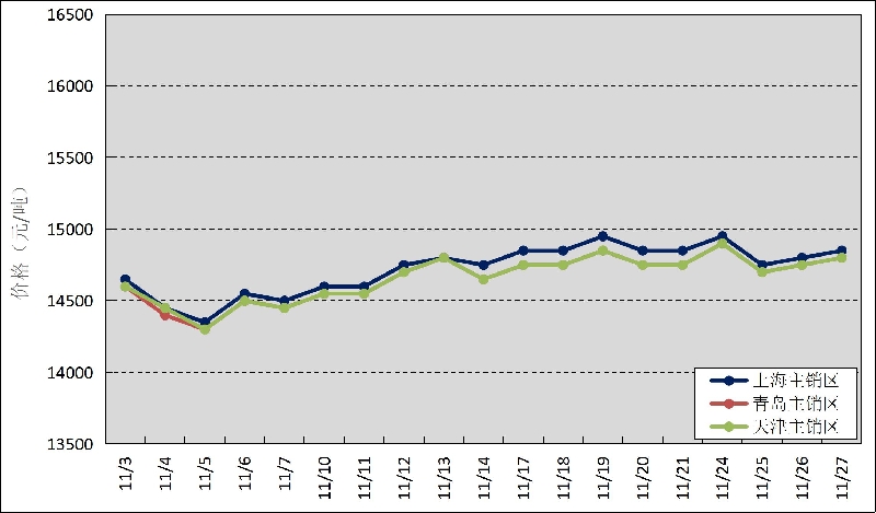 圖3  2025年11月國內(nèi)主銷區(qū)天然橡膠價格走勢