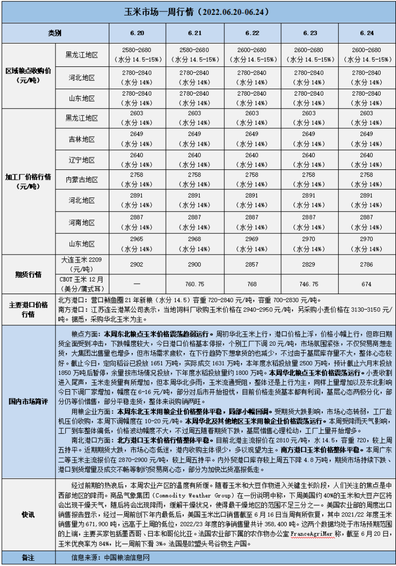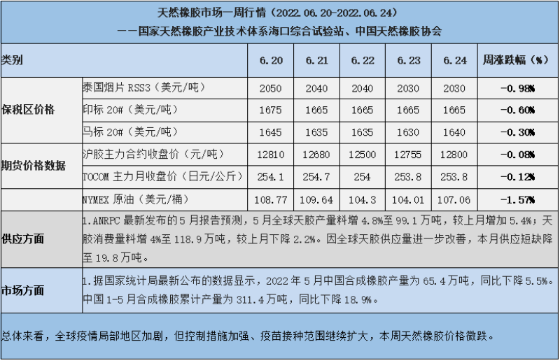 天然橡膠、大豆、玉米市場(chǎng)一周行情(2022.06.20-06.24)