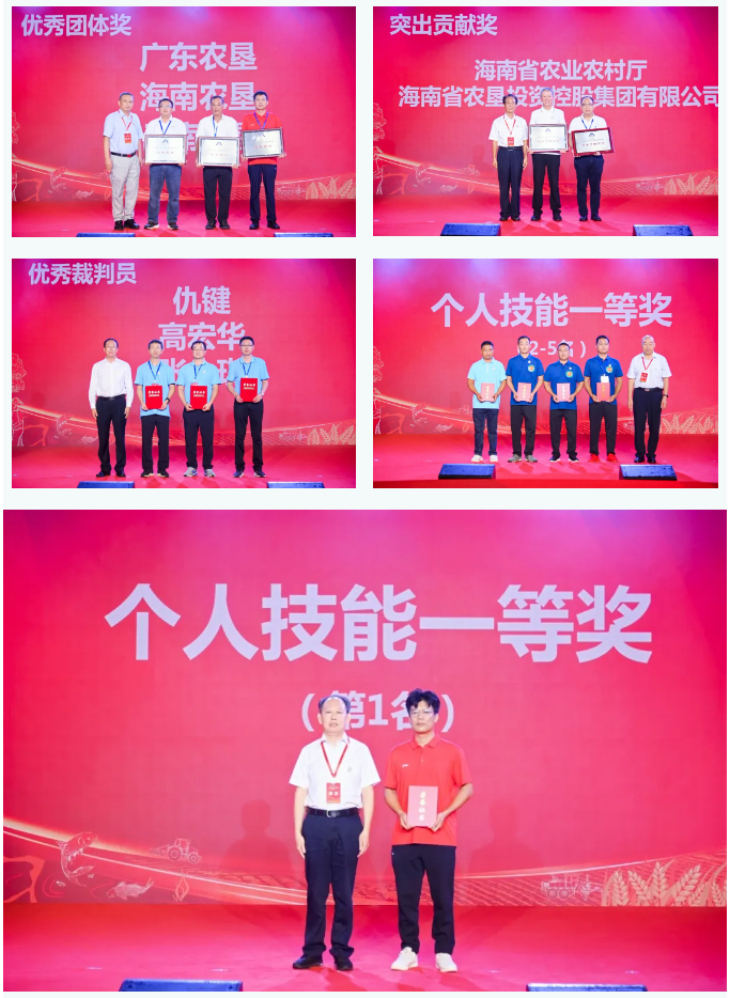 經(jīng)過(guò)2天緊張激烈的角逐,康德浩、楊清華、朱正偉、劉成和王龍振獲得本次競(jìng)賽個(gè)人前5名;廣東農(nóng)墾、海南農(nóng)墾和云南農(nóng)墾代表隊(duì)獲得“優(yōu)秀團(tuán)體獎(jiǎng)”;仇鍵、高宏華和張全琪獲得“優(yōu)秀裁判員”稱號(hào);海南省農(nóng)業(yè)農(nóng)村廳和海南省農(nóng)墾投資控股集團(tuán)有限公司獲得“突出貢獻(xiàn)單位獎(jiǎng)”。