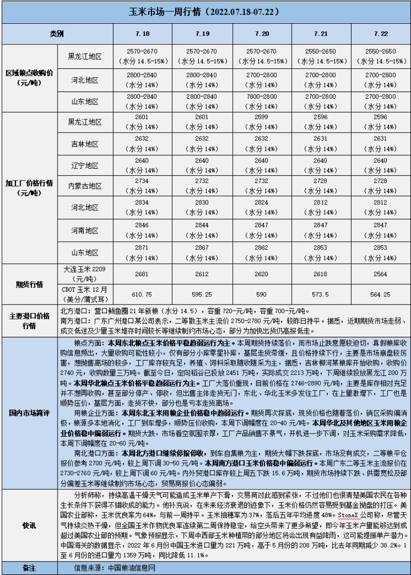 天然橡膠、大豆、玉米市場一周行情(2022.07.18-07.22)