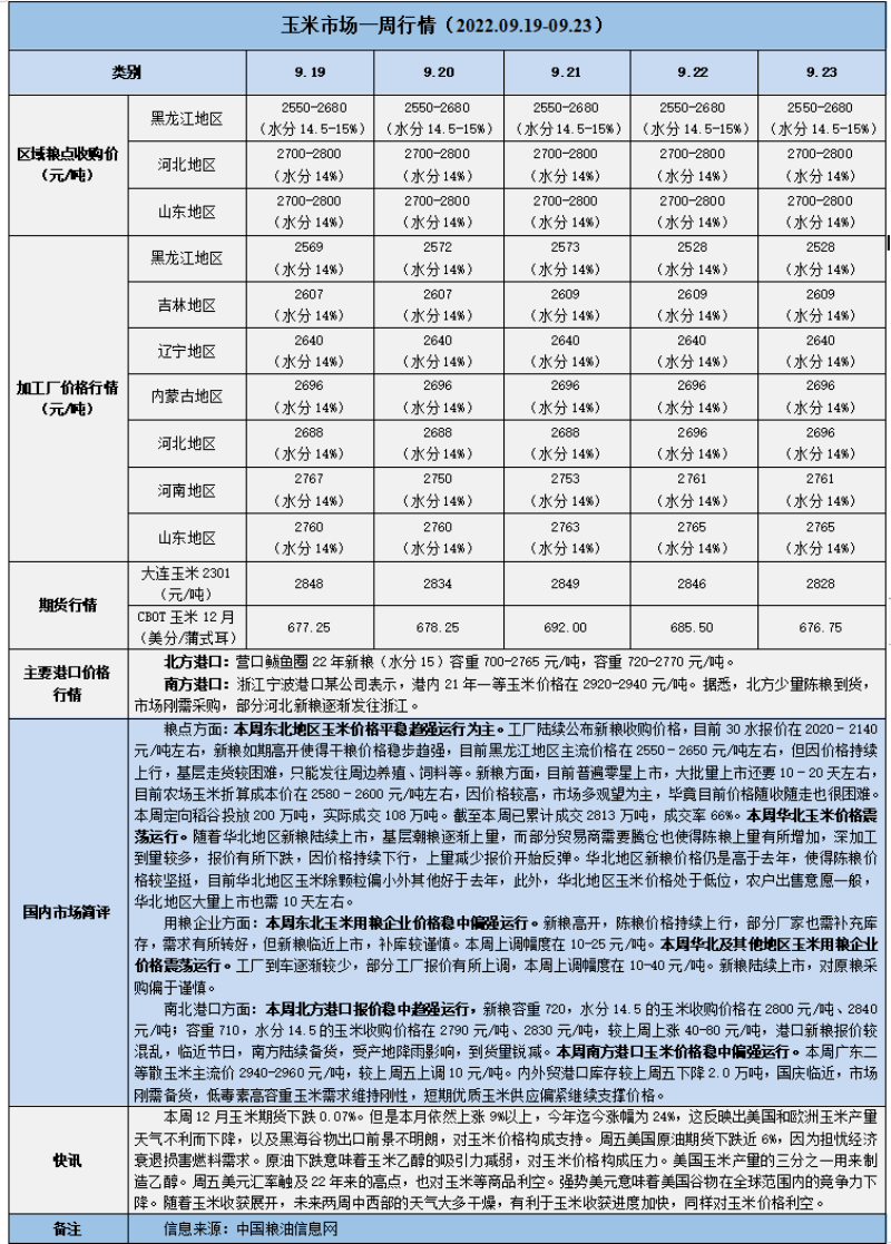 天然橡膠、大豆、玉米市場(chǎng)一周行情(2022.09.19-09.23)