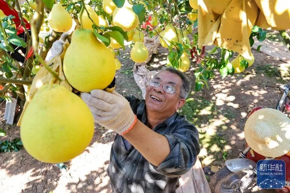 ↑沙田柚豐收,農(nóng)戶笑開顏(陳曉民 攝)