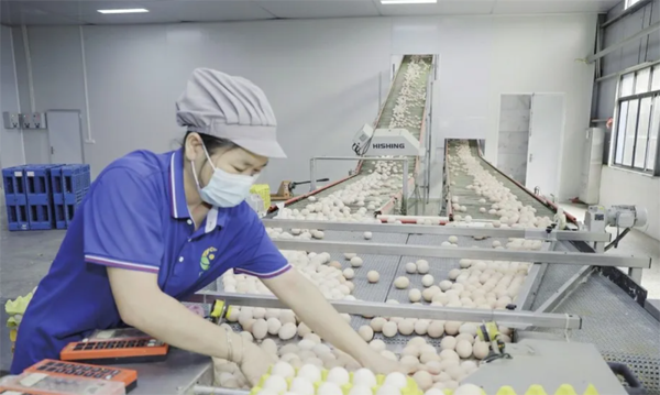 在雞蛋分揀車間,每一枚雞蛋都要經(jīng)過由丹麥進(jìn)口的賽諾沃生產(chǎn)線共12道工序才能達(dá)到出產(chǎn)的標(biāo)準(zhǔn)。次蛋光學(xué)篩選、食品級清洗、紫外線殺菌、裂紋聲波檢測、可食用白油覆膜、激光噴碼、全自裝箱……雞蛋自動化生產(chǎn)流程一氣呵成?!叭ツ辍畯V墾鳳鮮’雞蛋通過NSF無抗生素認(rèn)證時,審核員都不敢相信中國農(nóng)場能達(dá)到歐盟標(biāo)準(zhǔn)?!绷何暮曜院赖卣故局u蛋溯源系統(tǒng),掃碼可見每枚蛋產(chǎn)自哪棟雞舍、哪批飼料?!?
