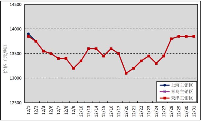 國(guó)內(nèi)主銷(xiāo)區(qū):12月,國(guó)產(chǎn)全乳標(biāo)準(zhǔn)膠上海市場(chǎng)平均價(jià)格13522元/噸,環(huán)比下降214元/噸,最高價(jià)為13900元/噸,最低價(jià)為13100元/噸;青島市場(chǎng)平均價(jià)格13520元/噸,環(huán)比下降212元/噸,最高價(jià)為13850元/噸,最低價(jià)為13100元/噸;天津市場(chǎng)平均價(jià)格13520元/噸,環(huán)比下降212元/噸,最高價(jià)為13850元/噸,最低價(jià)為13100元/噸。