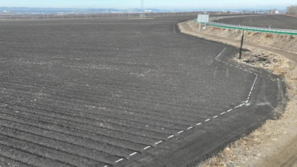 近日,在呼倫貝爾農墾大興安嶺東方紅農牧場分公司111國道兩側的田間地頭,一道道整齊的白色線條宛如亮麗的風景線。