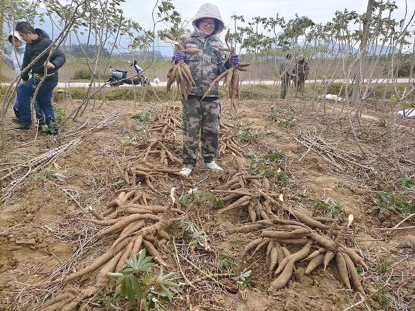 模式創(chuàng)新,凝聚發(fā)展之力。兩江鎮(zhèn)采用“專家+農(nóng)戶”合作模式,引進(jìn)國(guó)家木薯產(chǎn)業(yè)體系專家與農(nóng)戶緊密合作,農(nóng)戶提供土地,專家不定期到場(chǎng)提供技術(shù)支持,共同試驗(yàn)種植高產(chǎn)新品種。今年,漢安村合作片區(qū)合作模式下的木薯種植基地面積達(dá)到了500畝,帶動(dòng)周邊超100戶農(nóng)戶參與,預(yù)計(jì)2025年種植面積將達(dá)3000畝以上。合作模式不僅突破了農(nóng)戶種植技術(shù)的難關(guān),也搭建起銷售的橋梁。新模式下,用新品種、新技術(shù)種植的木薯一上市便被搶購(gòu)一空,收購(gòu)價(jià)格比傳統(tǒng)種植模式下的木薯高出30%,帶動(dòng)廣大農(nóng)戶增收致富。