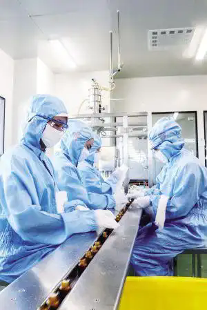 三七從植株到產(chǎn)品,要經(jīng)歷層層嚴(yán)格把關(guān),不同產(chǎn)品需要采用不同的現(xiàn)代化技術(shù)。例如云南白藥集團(tuán)生產(chǎn)的現(xiàn)代中藥制劑氣血康口服液,濃縮提取后的液體被送入自動(dòng)灌裝生產(chǎn)線,先進(jìn)的灌裝機(jī)械不僅能實(shí)現(xiàn)精確計(jì)量,還能保證無(wú)菌操作。生產(chǎn)線上,自動(dòng)貼標(biāo)、噴碼、包裝等流程一氣呵成,不僅提高了生產(chǎn)效率,也讓產(chǎn)品信息可追溯。