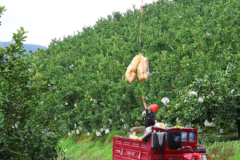 村民正在采摘柚子。勐海縣融媒體中心供圖