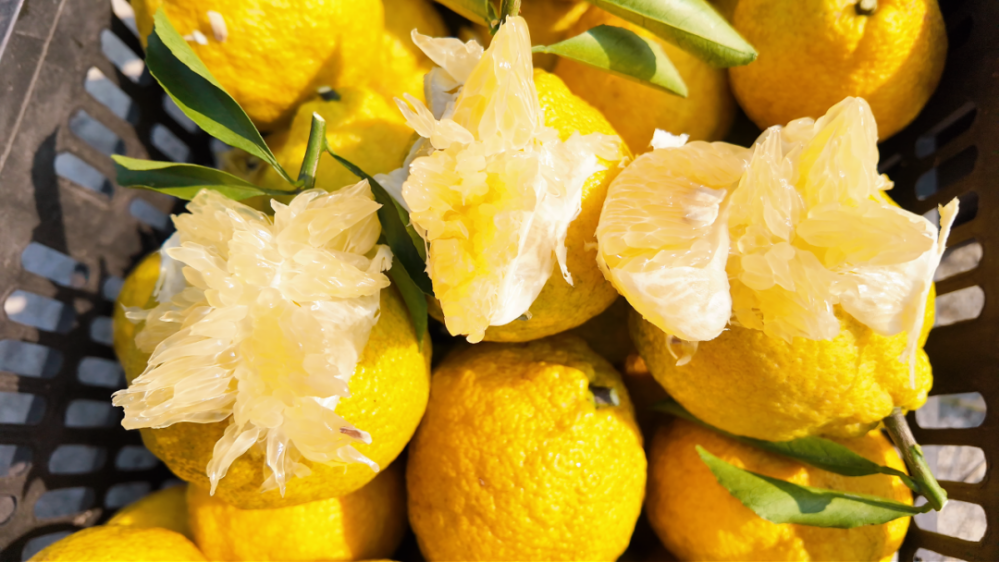 果園占地45畝,內(nèi)植1000株小樹與3000株大樹。小樹單株掛果3至10斤,果實圓潤飽滿;大樹則碩果累累,單株結(jié)果可達50至60斤,盡顯豐產(chǎn)之姿。得益于當?shù)氐锰飒毢竦淖匀粭l件與科學精細的管護,此地產(chǎn)出的黃金貢柚果大皮薄、果肉晶瑩剔透,一口咬下,清甜多汁、脆嫩爽口,且富含維生素C,實為冬日養(yǎng)生之佳品。值得一提的是,果子采摘后放置七天回糖,口感會愈發(fā)清甜。