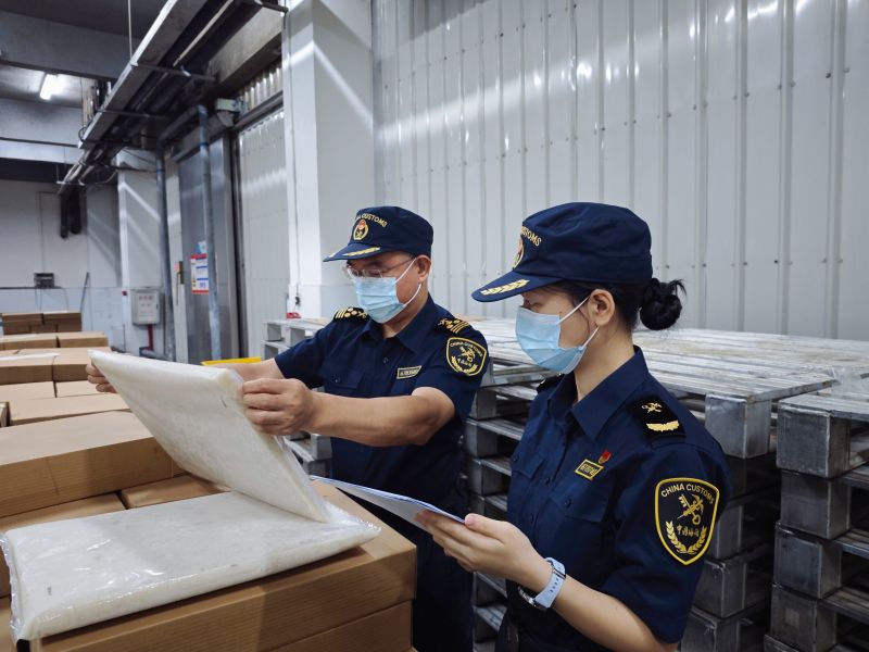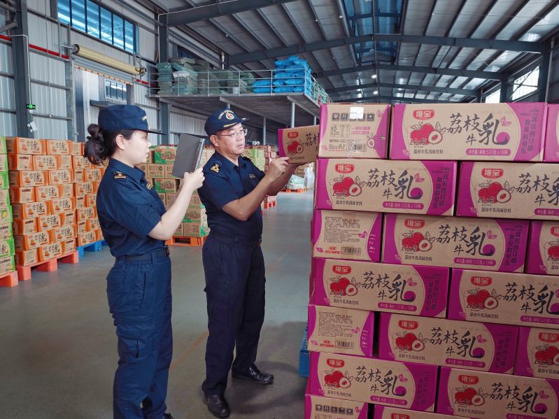 圖為:海關關員對荔枝牛乳進行監(jiān)管