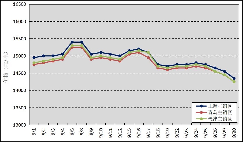 圖3 2025年9月國內(nèi)主銷區(qū)天然橡膠價格走勢