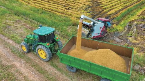 秋收搶農(nóng)時,組織是關(guān)鍵。今年寧夏農(nóng)墾各農(nóng)場的水稻秋收現(xiàn)場,從收割機(jī)聯(lián)系、作業(yè)現(xiàn)場安全管理到曬場資源有序分配,再到聯(lián)系訂單收購對象和糧食經(jīng)紀(jì)人收購、運(yùn)輸,各環(huán)節(jié)堪稱“嚴(yán)絲合縫”,秋收進(jìn)行得有條不紊。稻谷銷售也在同步進(jìn)行,目前新稻谷的市場收購價在每公斤2.60元上下浮動,作為育種使用的優(yōu)質(zhì)品種如連湖農(nóng)場種植的“寧粳50號”收購價能達(dá)到每公斤3.10元。寧夏農(nóng)墾所屬各糧庫也提前開展空倉消毒、機(jī)械設(shè)備、人員培訓(xùn)等準(zhǔn)備工作,落實秋糧收購倉容11.66萬噸,收購資金2.73億元(稻谷1.5億元、玉米1.23億元),確保秋糧收購資金安全、使用及時,設(shè)置秋糧收購點21個。目前已收購稻谷2.7萬噸。