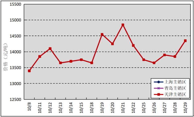 國內主銷區(qū):10月,國產全乳標準膠上海市場平均價格13966元/噸,環(huán)比上漲1343元/噸,最高價為14850元/噸,最低價為13400元/噸;青島市場平均價格13966元/噸,環(huán)比上漲1343元/噸,最高價為14850元/噸,最低價為13400元/噸;天津市場平均價格13966元/噸,環(huán)比上漲1337元/噸,最高價為14850元/噸,最低價為13400元/噸。
