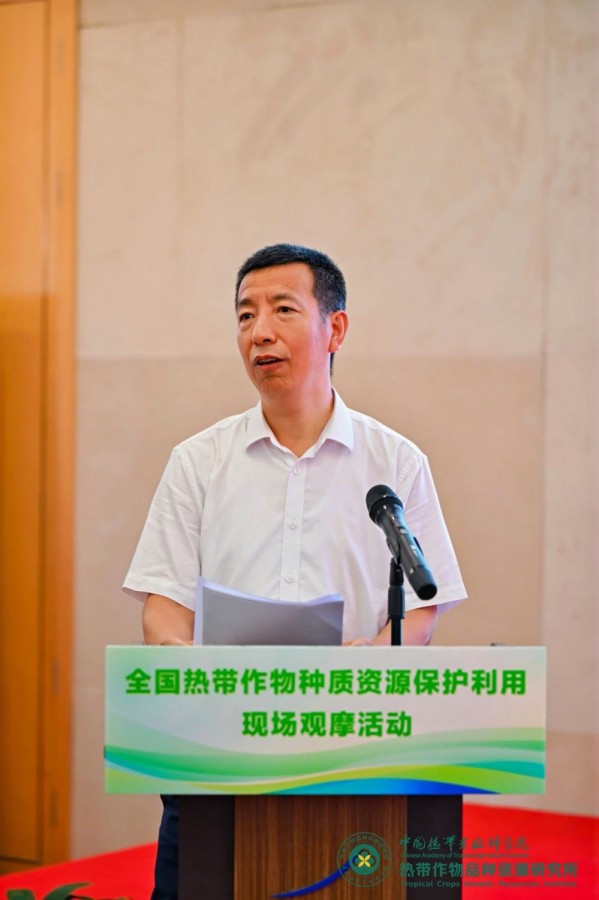 農(nóng)業(yè)農(nóng)村部農(nóng)墾局副局長、一級巡視員程景民在講話中總結(jié)了近年來熱作種質(zhì)資源保護利用工作取得的成效。熱作種質(zhì)資源收集保存總量持續(xù)提升,形成了以資源圃(庫)為核心、復(fù)份圃為補充的熱作種質(zhì)資源集中保存體系,收集保存熱作種質(zhì)資源超9萬份,保存數(shù)量躋身世界前10位。熱作種質(zhì)資源鑒定利用體系日臻完善,制定了一系列種質(zhì)資源描述規(guī)范、數(shù)據(jù)規(guī)范和質(zhì)量控制規(guī)范,完成4.7萬份次以上種質(zhì)資源鑒定評價工作,初步建立了表型與基因型相結(jié)合的鑒定評價技術(shù)體系。熱作新品種選育及推廣成果顯著,截至2023年底,國家和省級累計審定認(rèn)定超200個熱作品種,登記品種數(shù)40余個,橡膠、香蕉等主要熱作良種覆蓋率超過90%。熱作種質(zhì)共享利用和對外交流合作不斷深化,累計從100多個國家和地區(qū)引進特色熱帶水果、藥用植物、香飲料等種質(zhì)資源,并積極推動我國自主選育品種“走出去”。